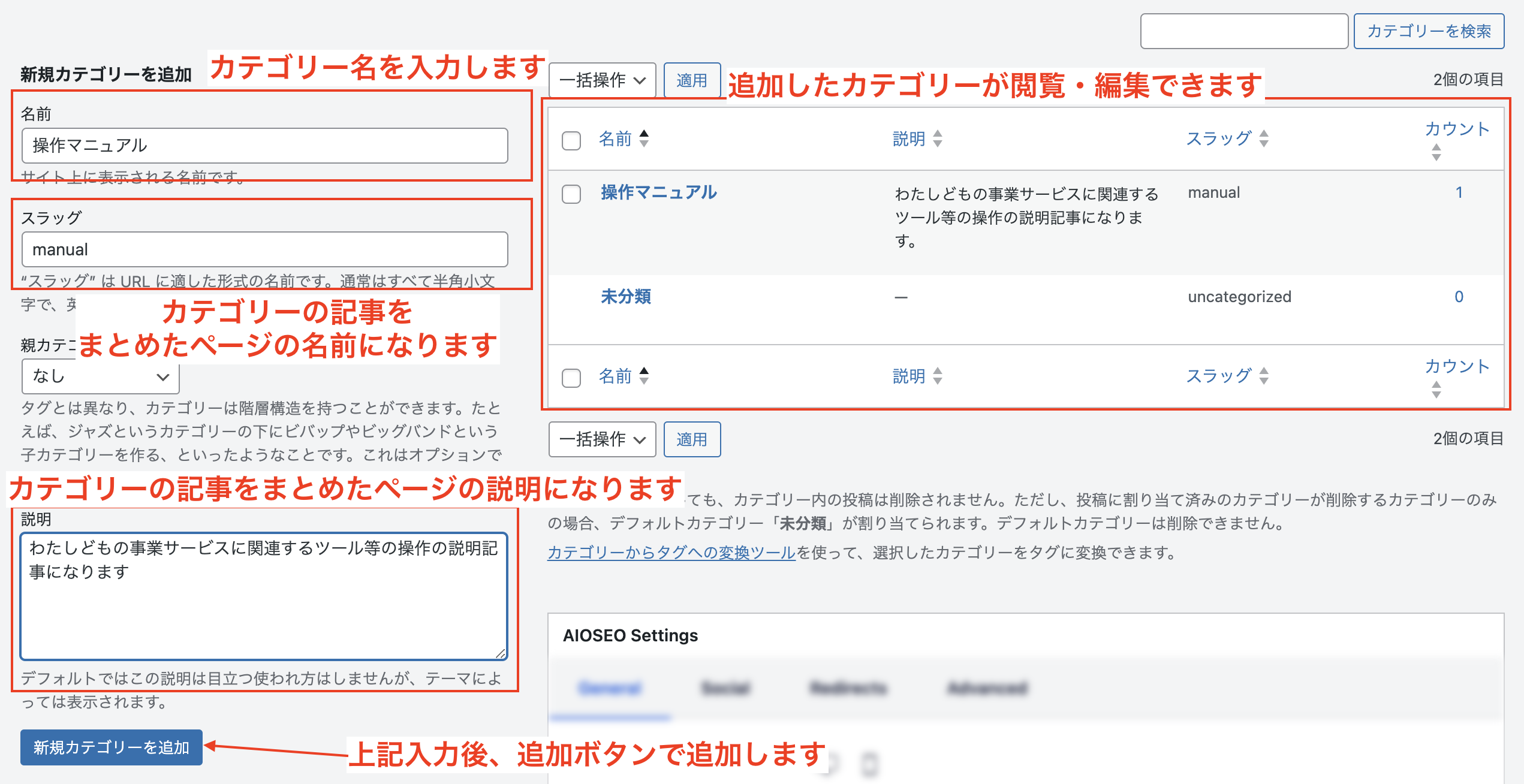 • 説明:カテゴリーの説明